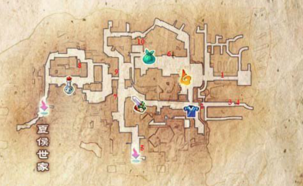 6 室内宝箱:200文、行军丹*2、兽皮*2