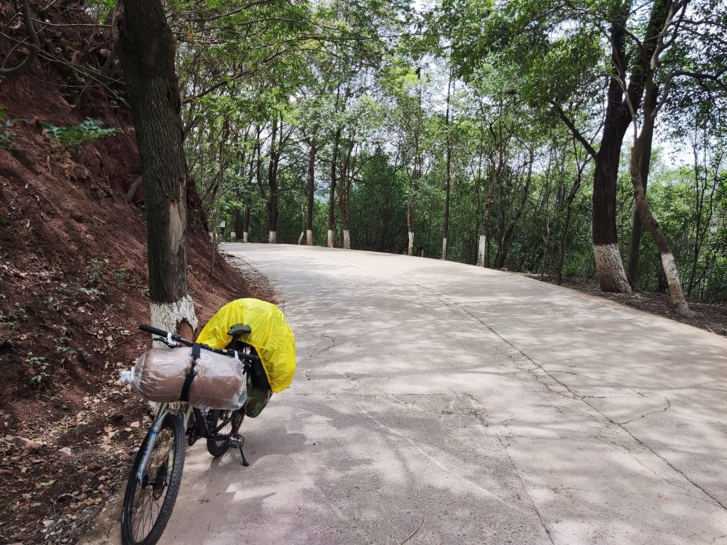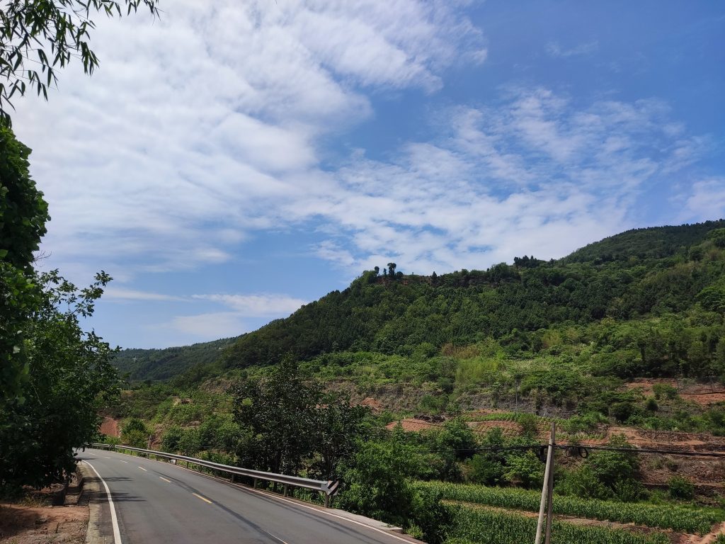 成环路还是很好走的。但是路线不会固定在上面,毕竟我要去的地方有六百多公里。离开成环路后,转入一条小路,我便进入了山区。还没开工,我便踩不动了。可能是长期没锻炼,加上是上坡。只好下来推着走。顺便问了下路人山顶还有多远。接着便是上山下山,起起伏伏。爽也爽死,累也够呛。便叹道:“好好的日子不过,我这是遭啥罪啊!但又想起那句‘身体和灵魂总有一个在路上’便继续前行了”
