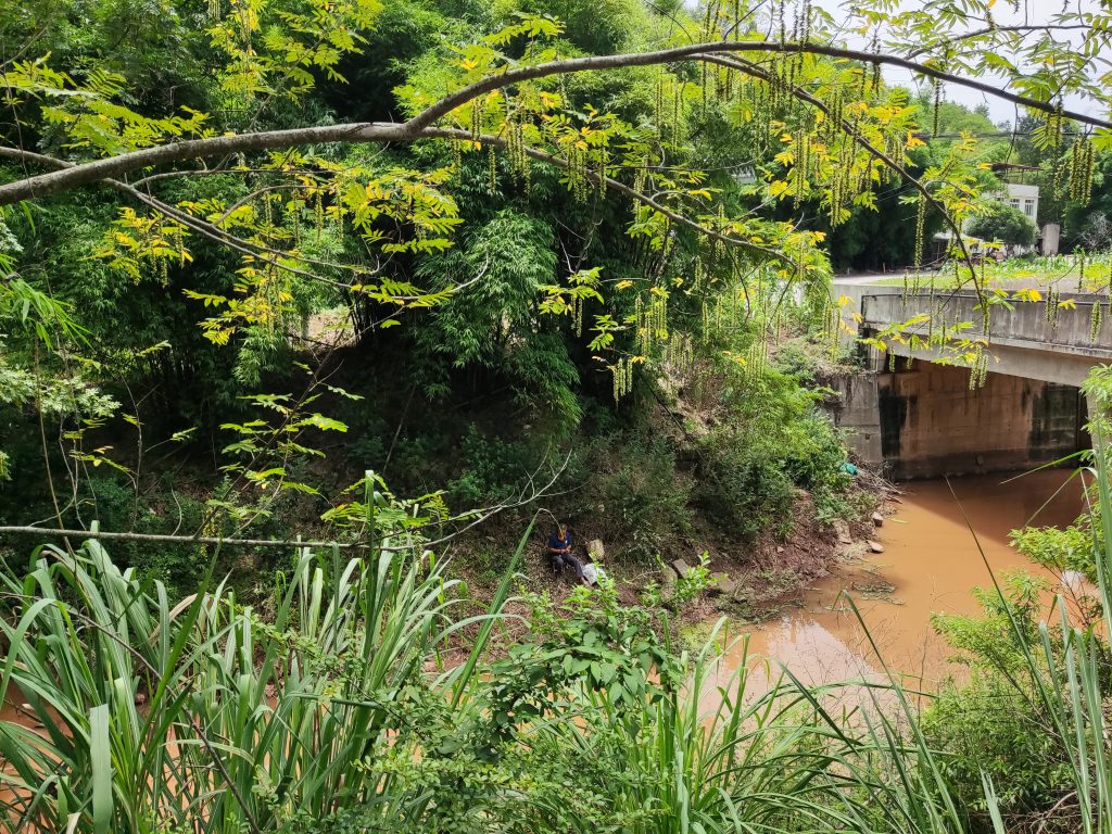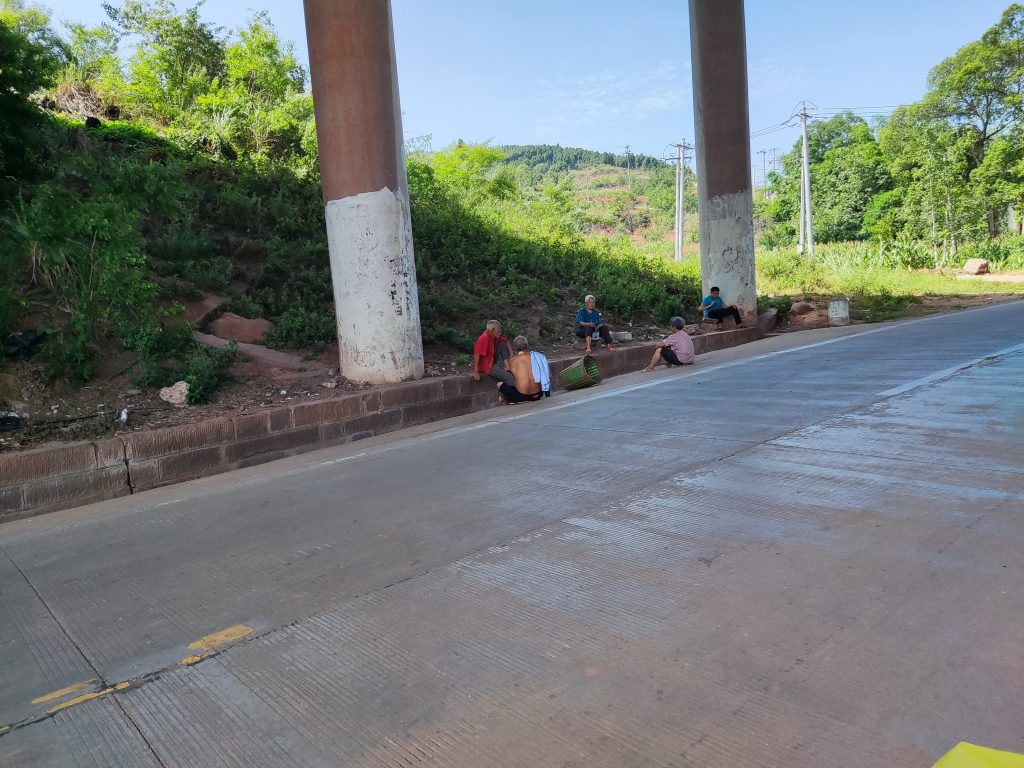 下午三点,遇到一个上坡。实在难耐,遂找了一个阴凉的地方,高速大桥下面。想不到村里的人也在此纳凉。此时我就成了他们的显眼包,因为语言不通,加之有点社恐。就静静站在那看他们聊天。不过看他们表情,我显然知道他们在谈论我。不过并没有谁前来询问。难不成他们也社恐。哈哈哈!