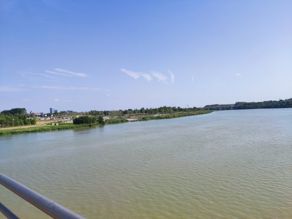 随着很多人过来纳凉,我不得不开始骑行。后面这段路其实没多长,不一会便到了淮口县城,看到了沱江。
