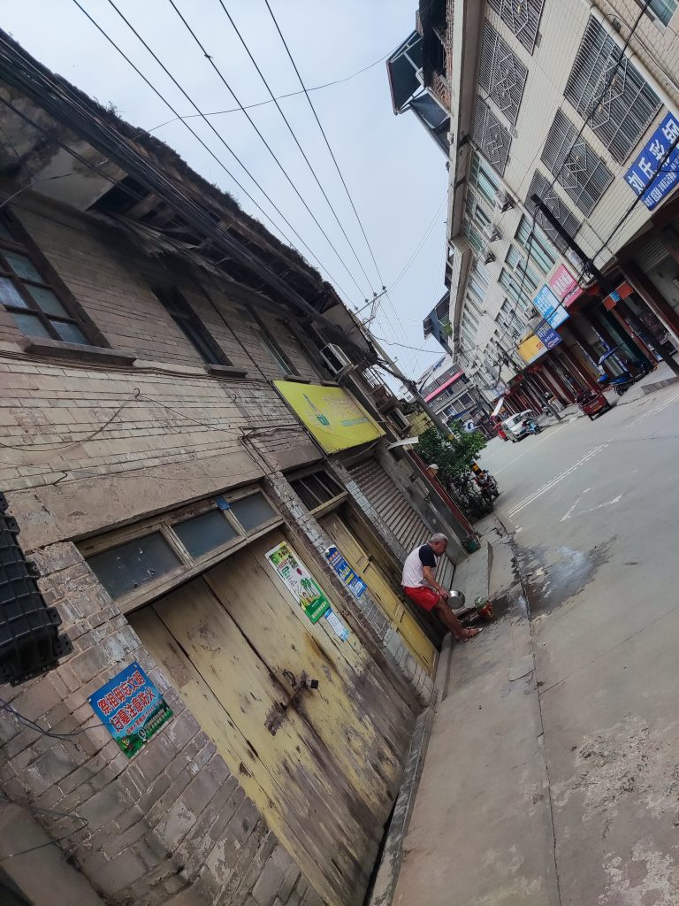 一路下坡就来到一个云台镇的地方。其实是错过路了。但是发现那是条小路就不在意了。这时候才早上9点左右。看路面昨晚这里下雨了。还好我在山顶。进到小镇,没有什么好吃的。看到一家粉店就去试一试了。这一试就试出一个从深圳来的老板娘。