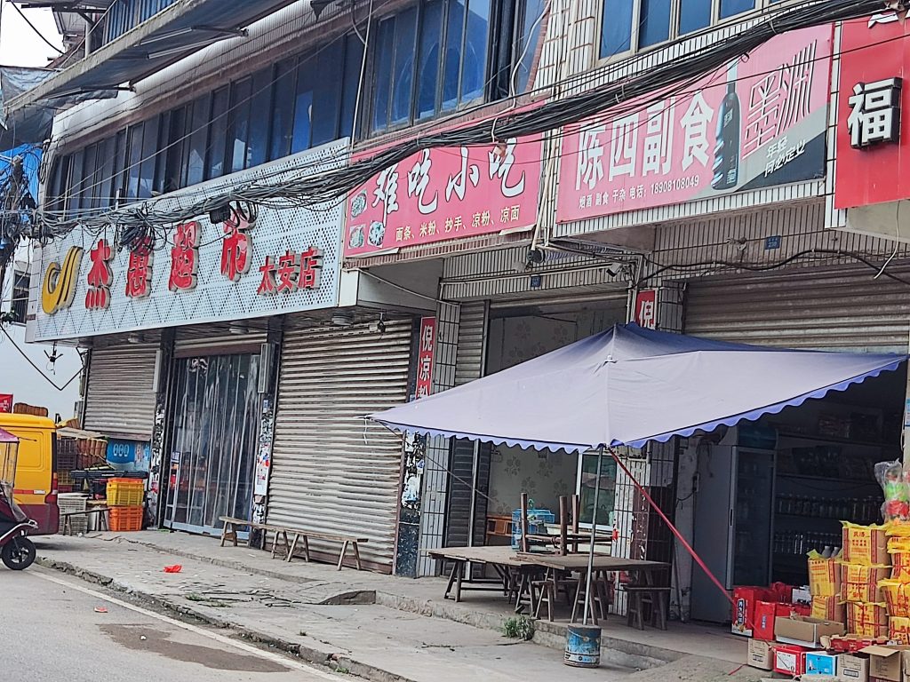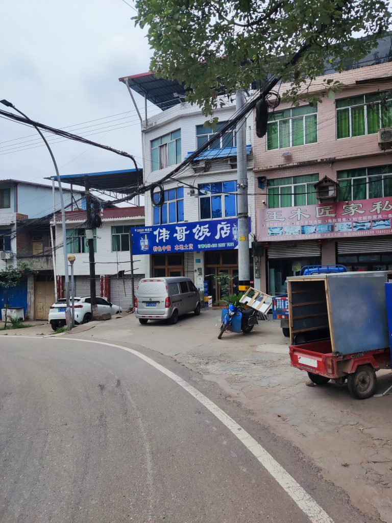 找了个交叉口的旅馆住了下来。感觉这个旅馆就是民房搭建的。估计只有我一个旅客。不过能放自行车就无所谓了。为了找吃的,就到处转悠了下。发现这里以前应该挺繁华的。现在落寞了。感叹时代就是这样周而复始。选了家比较偏僻的店,看情况也只有我一个客人。但是他们员工自己要聚餐。我就单开了一个桌自顾自的吃起来了。