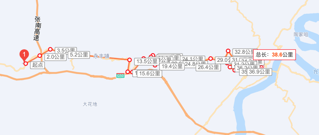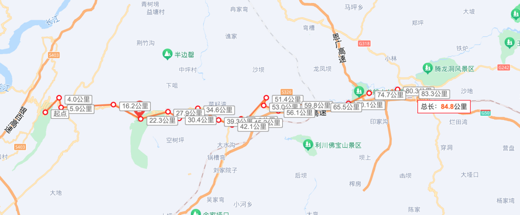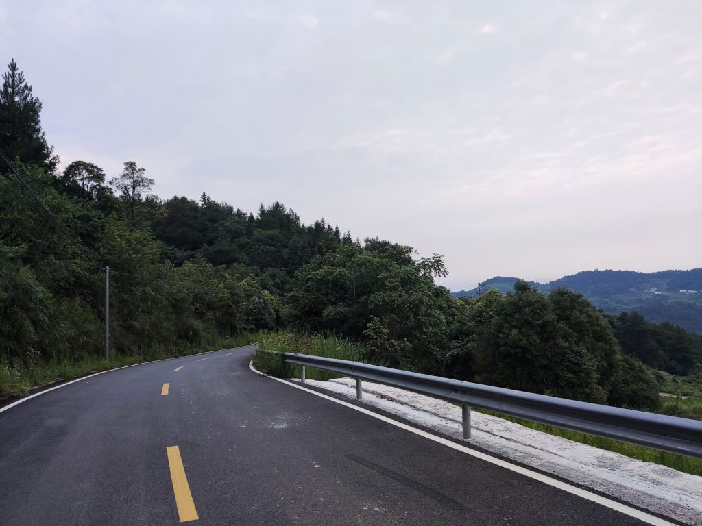 跨过长江大桥,算是正式出了忠县县城了。这里给了左右两条路,一个上坡一个下坡。我毫不犹豫的选择了下坡。这条路刚开始还是真好,双向六车道。应该是这次骑行最宽的路了。后面就要拐入乡道,乡道的尽头就是G350国道。这一路虽然是上坡,但骑行感觉还不错。有山有水还有树荫遮挡。车也是偶尔过一辆。所以并没骑的很快,想吸收下这天然的氧吧资源。放松下连日以来的紧张情绪。因为过了这座山,就离目的地利川不远了。