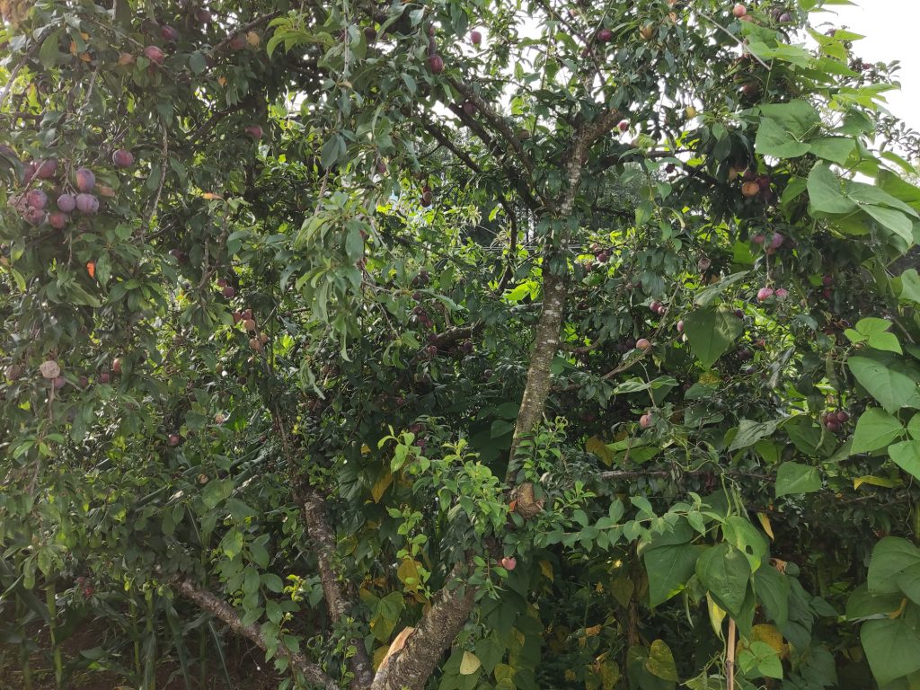 发现我的驼包就是个话匣子。任何人看到它都有很多问号。老板娘问我从哪里过来,我说成都。她还说你是从那个山上下来的?我说是啊。她说你真厉害,我开车都心惊胆战的。也不知是我的那一点让她打开了话匣子,自顾自的说自己也在深圳呆了二十年,说深圳只适合工作不适合生活。也在五华山干了两年。其他的不是很记得了。只是这时来了客人,我也需要去赶路了。便辞别的这家米粉店。但老板娘好像还有话要说。有缘再见吧!在这里我买了些李子,其实多余了,一路上都有的摘。