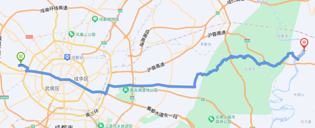 我用的高德导航,线路是直穿成都市中心。这一路我惊叹不已。首先路过了公司,路过了人民公园,路过了天府广场,路过了春熙路太古里,还有个什么著名公园。竟然都在一条直线上。不到两小时横穿了成都。这得益于成都道路规划真的很好,起码是我见过的北上深拥有最好的自行车绿道城市之一。