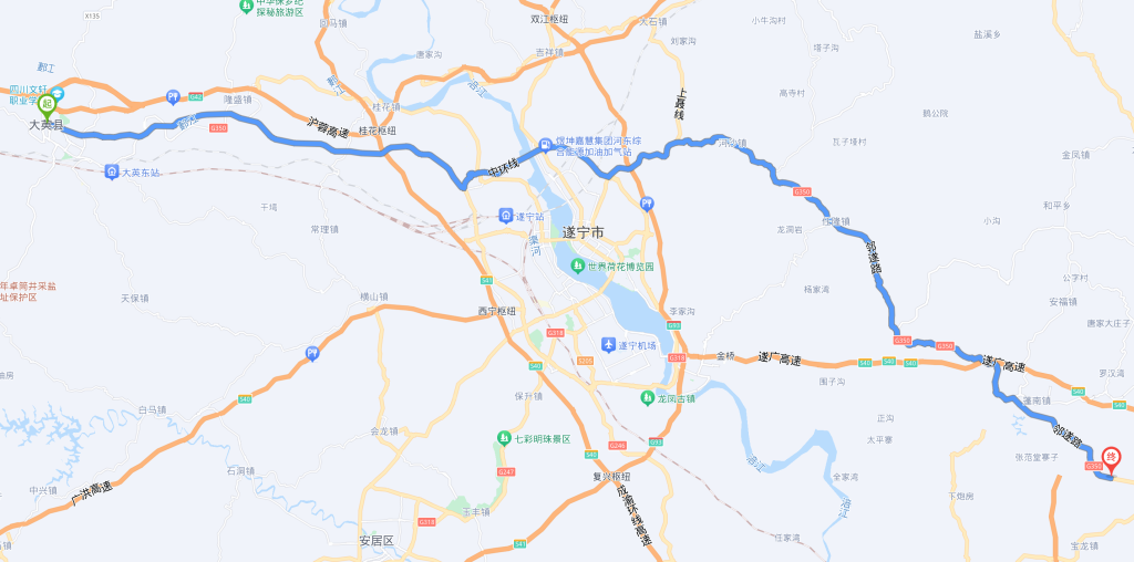 7月1日,早早启程去遂宁。可昨天的腿脚似乎没休息好,到了下午又开始疼了。所以终点改到了大英县。