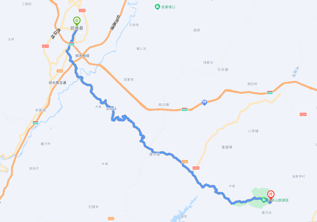 后面的路程是打算今天最迟要到邻水县。因为我知道要翻越高山,可能路不好走。但没想到差点过不去。高德这个破导航每次给你整一些乡间小路,岔路口又多,坡度还很大。要么就是错过了,要么就是根本推不上去。这次就是这样。带到一个山顶上,而且坡度几乎都大于45度往上了。推起来都费劲。要不是及时止损,往回走。几乎都要露宿无人区了。后来下山路过一棵李子树,向农家讨要几个李子吃,顺便聊了下路该怎么走。农户告诉我你这样根本过不去的。