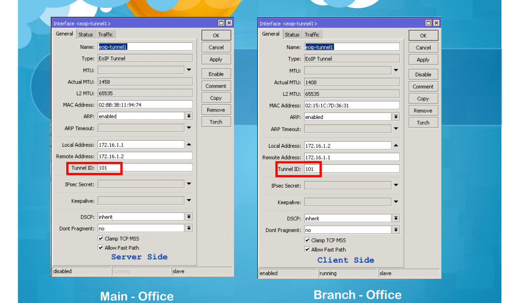 · 2019-04-18 · wzyou90 · 💬 暂无评论 Mikrotik EOIP OVER VPN 设置 EOIP设置 MIKrotik本地地址与远程地址分别是对方地址,并且也是隧道地址。前提是你要建立VPN连接 标签:无