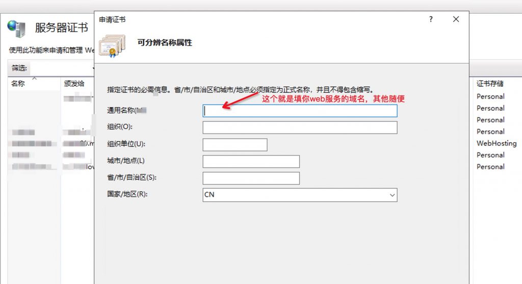 1,把Windows的证书颁发机构角色安装好,IIS服务管理器当然也是要安装好的。安装好后,到IIS管理器去创建证书申请。如下图
