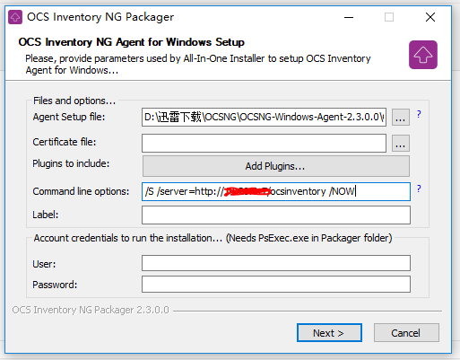 /S /server=http://你的ocs服务器ip/ocsinventory /NOW